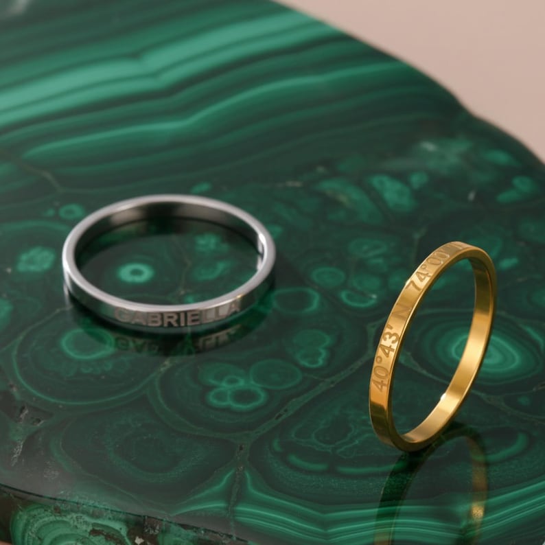- Design: Glatt bånd med tilpasset navnegravering