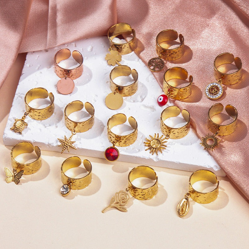 Gullbelagt Ring 18K med Anheng - Titanstål Design