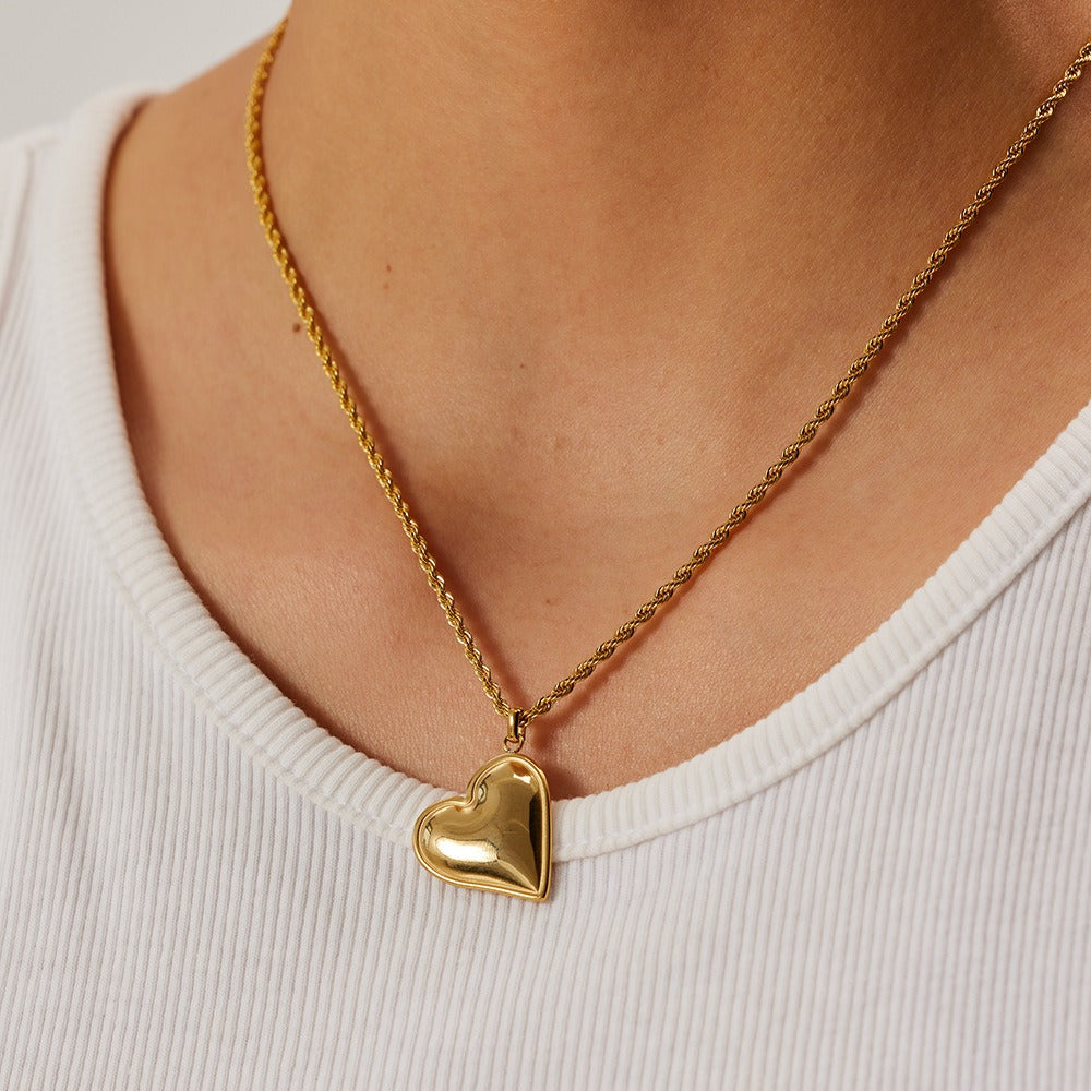 18K Gullbelagt Hjerte Halskjede med Vridd Kjede - Klassisk Design Only