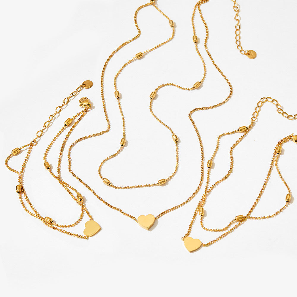 Ankelsmykke Dame 18K gullbelagt - Dobbelt Lag Strand Hjerte Design