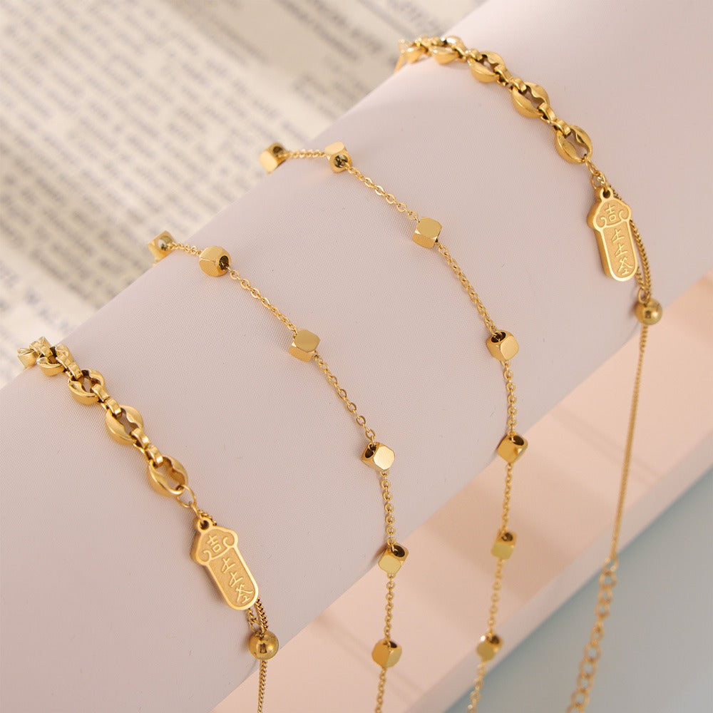 Designinspirasjonen til ankelsmykket kommer fra irregulære firkanter. Denne designstilen er enkel og generøs, samtidig som den også er moderne, og viser en unik motesmak.