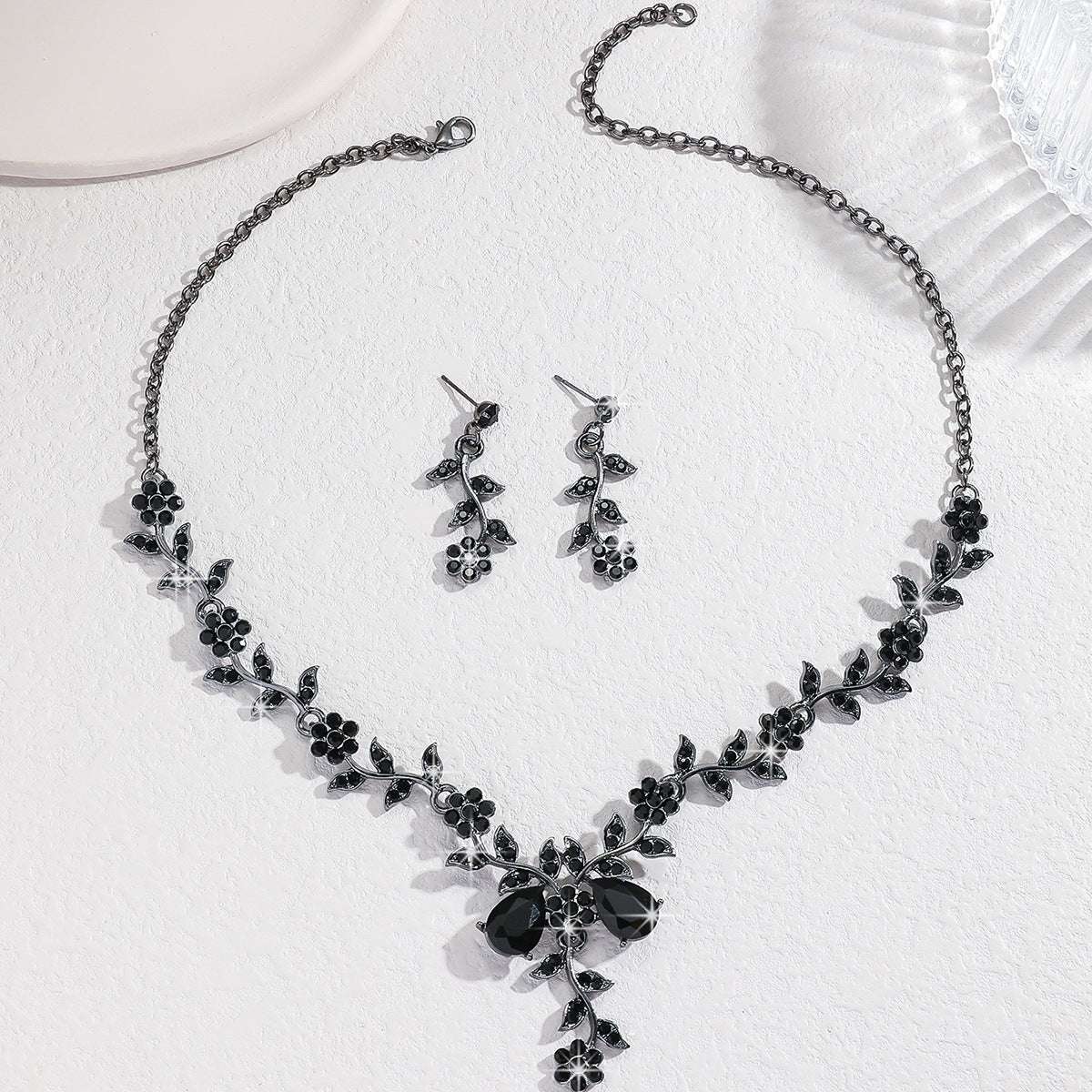 Dette omfattende settet inkluderer både øredobber og halskjede, og gir et komplett utseende som forbedrer din bryllupslook.
