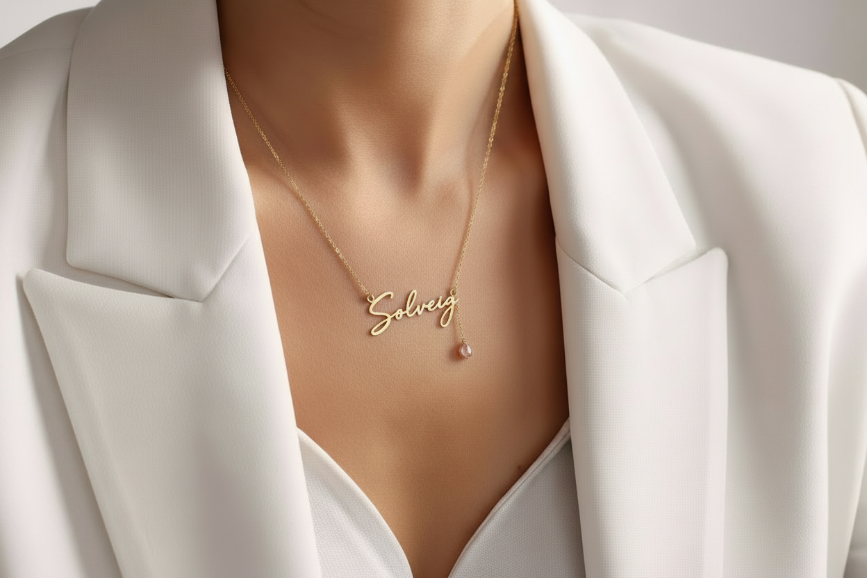 Navnehalskjede Kursiv – Med Fødselsstein