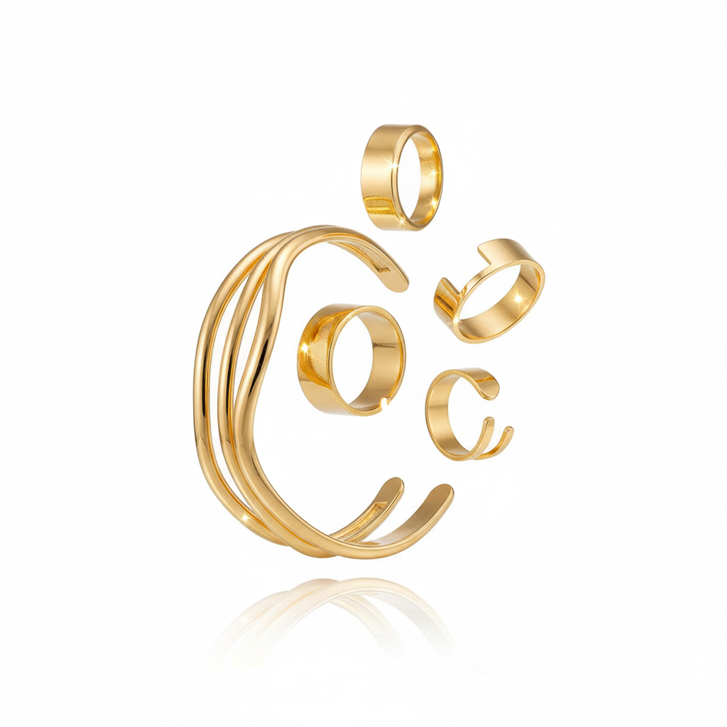 Oppdage vårt unike ringsett for dame med minimalistisk lava-inspirert design. Dette eksklusive ringsettet har en hul, buet form som gir et moderne og stilig uttrykk.