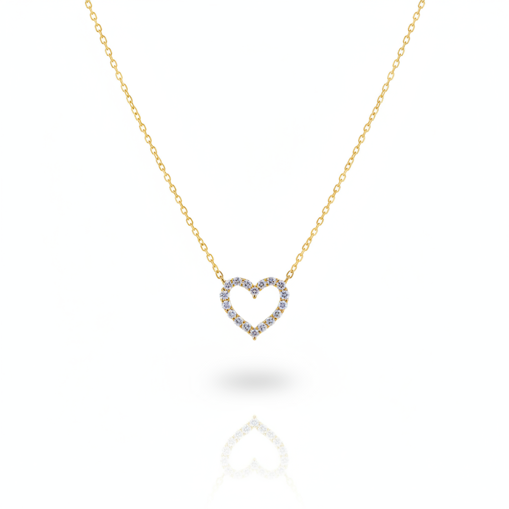Oppdage vårt vakre hjerte halskjede for dame med glitrende zirkon-krystaller. Dette romantiske halskjedet har et elegant hul hjerte-anheng som symboliserer kjærlighet og eleganse.
